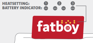La rangée inférieure avec 4 voyants indique la charge de la batterie. À 4 lumières, la batterie est complètement chargée. À 1 lumière, vous feriez bien de chercher une prise de courant, car vous ne pourrez profiter de la chaleur du Hotspot que pendant une courte période.
